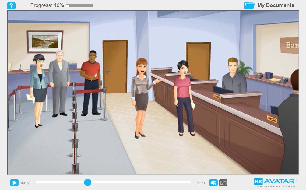 De Analist - Algemeen (Nederlands) test bevat een geanimeerde werksimulatie waarin kandidaten klanten, collegas en supervisors ontmoeten in een werkgerelateerde context. Uit enquêtes na de test blijkt dat de meerderheid van de kandidaten positief reageert op deze simulaties. {2}