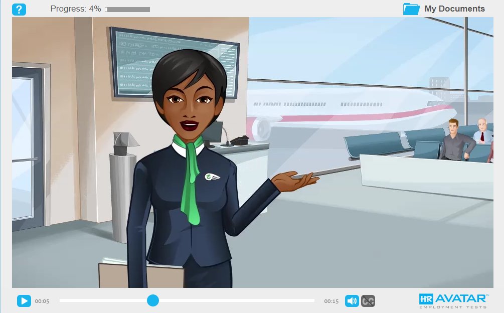 De Flight Attendant (Nederlands) test bevat een geanimeerde werksimulatie waarin kandidaten klanten, collegas en supervisors ontmoeten in een werkgerelateerde context. Uit enquêtes na de test blijkt dat de meerderheid van de kandidaten positief reageert op deze simulaties.